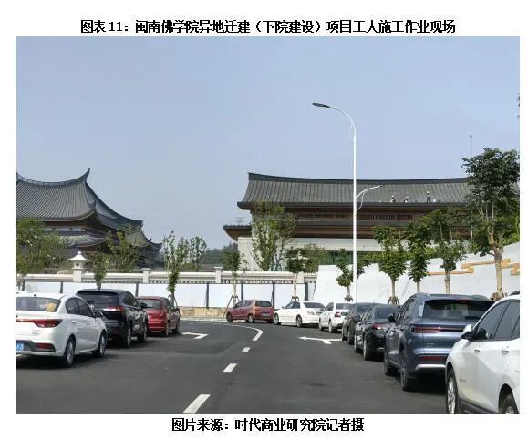 记者在现场看到,闽南佛学院异地迁建(下院建设)项目仍有大量工人施工,远远望去,工地大门右侧的建筑屋顶仍有多名工人在开展作业。在工地门口,有工人向记者表示,“目前项目在收尾”。