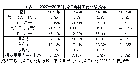 不过,2025年聚仁新材的业绩有所改善,营收达6.35亿元,同比增长32.63%;归母净利润为1.22亿元,同比大幅增长46.12%;毛利率回升至32.11%,但尚未恢复至2023年的水平。