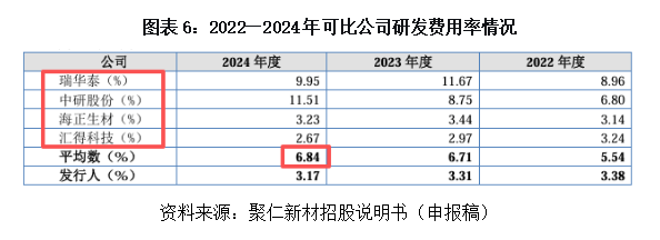 拷问二:研发投入“掉队”是否会动摇护城河?技术壁垒不是静态的,而是需要持续投入的动态竞争力。报告期内,聚仁新材研发费用率逐年下滑,显著低于可比公司的平均水平。当国际巨头凭借数十年积累构筑工艺壁垒,当国内新进入者加速追赶,聚仁新材能否在“存量优势”耗尽之前完成技术迭代,是对其能否守住护城河的根本考验。