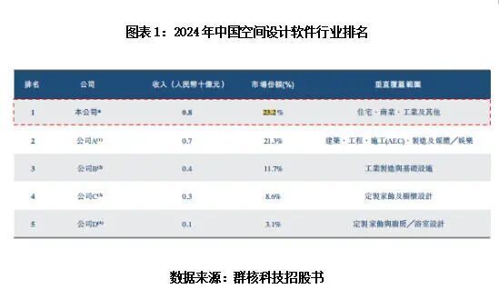 依托赛道红利与技术先发优势,群核科技已确立了领先身位。招股书显示,按2024年收入计算,群核科技以23.2%的市占率登顶中国空间设计软件市场,领先国内外一众竞品。依托国内酷家乐、海外Coohom两大产品矩阵,群核科技以专用GPU集群、AI算法、BIM建模为核心技术底座,为客户提供快速拖放式3D设计、即时逼真渲染、广泛模型库及BIM能力,有效破解传统CAD软件本地部署、操作复杂、渲染低效的行业痛点。
