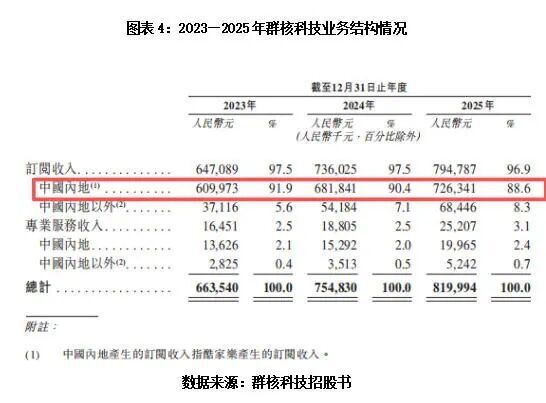 从收入结构来看,群核科技的营收高度依赖“酷家乐”单一产品,业务抗风险能力偏弱,业绩稳定性存疑。招股书显示,2025年,酷家乐带来的订阅收入达7.26亿元,占总营收的比例高达88.6%。核心收入来源高度集中,直接削弱了群核科技应对行业周期波动、市场竞争加剧等外部冲击的能力。