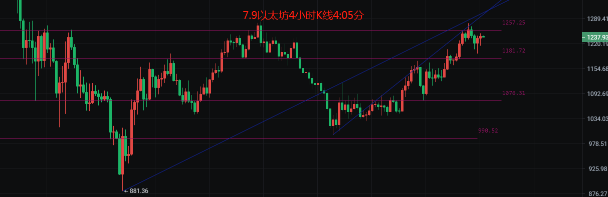 4小时K线同样处于布林带高位,承压1280,KDJ低位收口金叉阻力较大,MACD放量即将结束,DIF和DEA死叉即将成型,高位空可以继续持有,1小时反差较大,MACD金叉即将成型,KDJ向上翘头,从目前1240的点位上看,依旧承压1280-1290这个位置,那么思路上依旧建议高位空,最稳健,具体思路如下:
