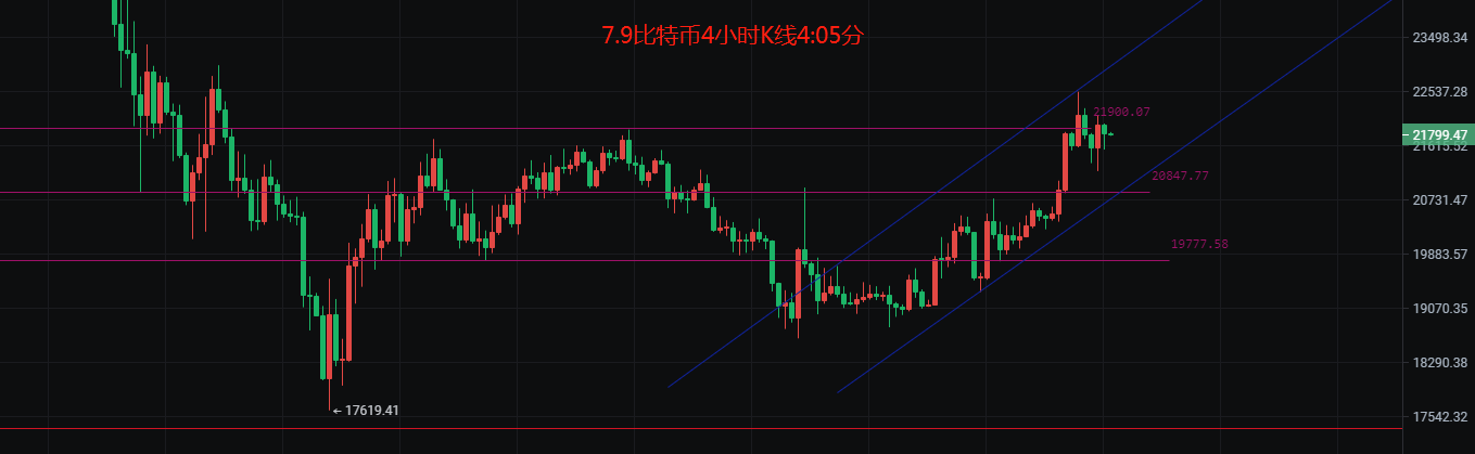 4小时K线承压22450,布林带向上开口,KDJ向下扩散,MACD放量减少,DIF和DEA上行疲软,K线几乎围绕21800来回横盘,由此可见这个位置大多数人都是理性的,1小时K线上行空间还未走完,MACD缩量上行K线承压,总体趋势并不明朗,思路上依旧是和昨天思路一样,不要盲目追多,