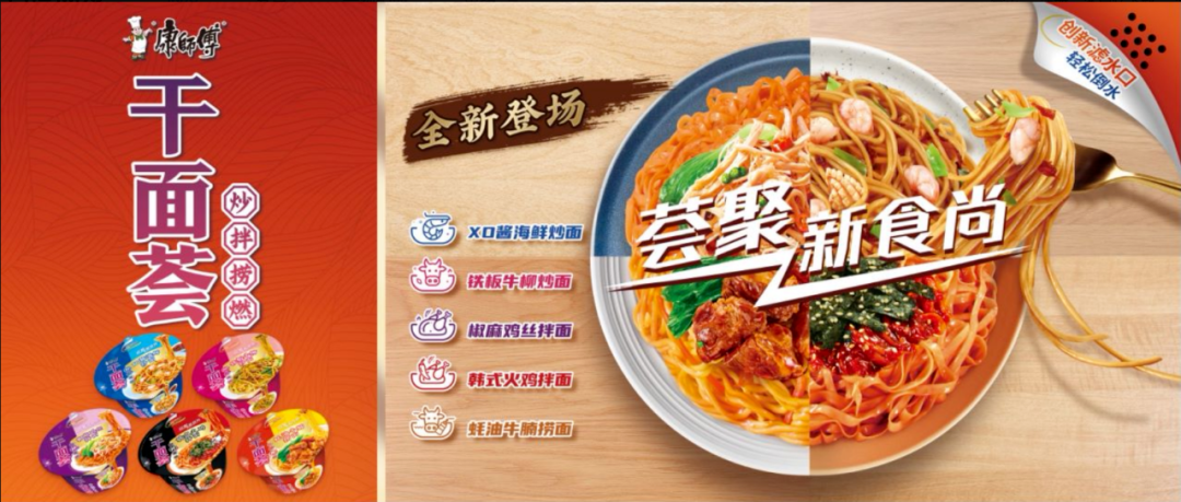 康师傅强化高端产品布局,在规格和口味方面持续“上新”。如汤大师推出“大满杯”规格产品;上市全新拌面品牌“干面荟”、手工日晒面系列“燃魂拌面”等产品。