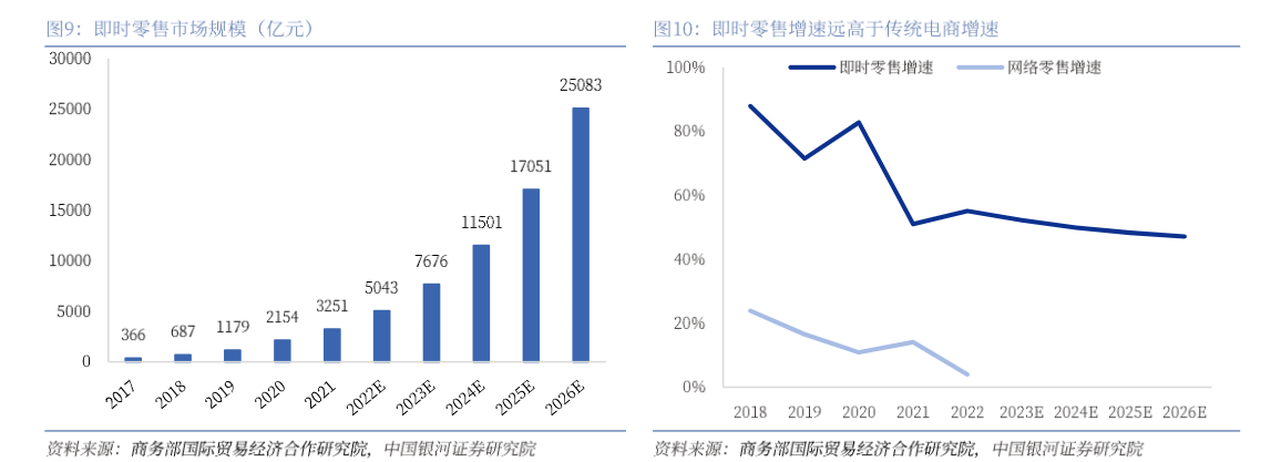 随着现代生活节奏的不断加快,年轻消费群体越来越注重服务的便捷性和个性化,“即时满足”成为消费者的重要需求。摩根士丹利预计,到2030 年,中国即时零售市场规模将增长至2万亿元。