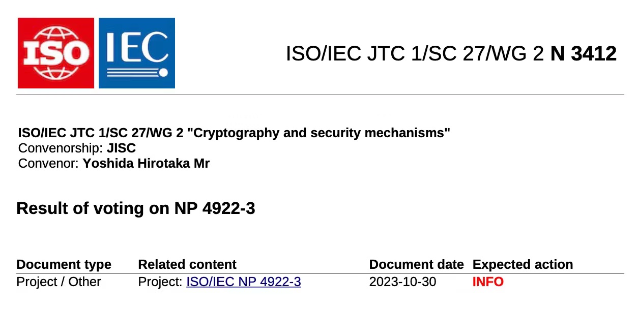近日,国际标准化组织(ISO)隐私计算系列标准第三部分(ISO/IEC JTC 1 SC27 4922-3 基于混淆电路的机制),正式通过立项投票,并将由中、日、韩、荷、英、法、爱尔兰、奥地利等8个国家的专家共同参与编撰。据了解,这是中国专家团队主导推动的首个ISO安全多方计算国际标准,将规范并指导业界对数据流通的算法安全及性能优化工作,加速数据价值释放。其中,三位标准负责人黄智聪、白晓媛、赵原均来自蚂蚁集团。