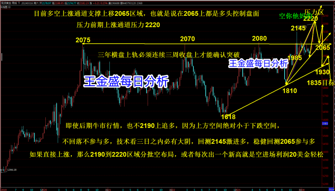 如果直接反弹第一次遇到2190到2196分批空2205损,同时挂单2203双倍空2213损目标都是2175到2165到250到2135到2105到2065,激进可以2185到2190区域分批空2198损目标同上。如果回测2125到2120区域多2120损目标2130到2140,目前幅度震荡扩大,所以一定控制仓位和心态。