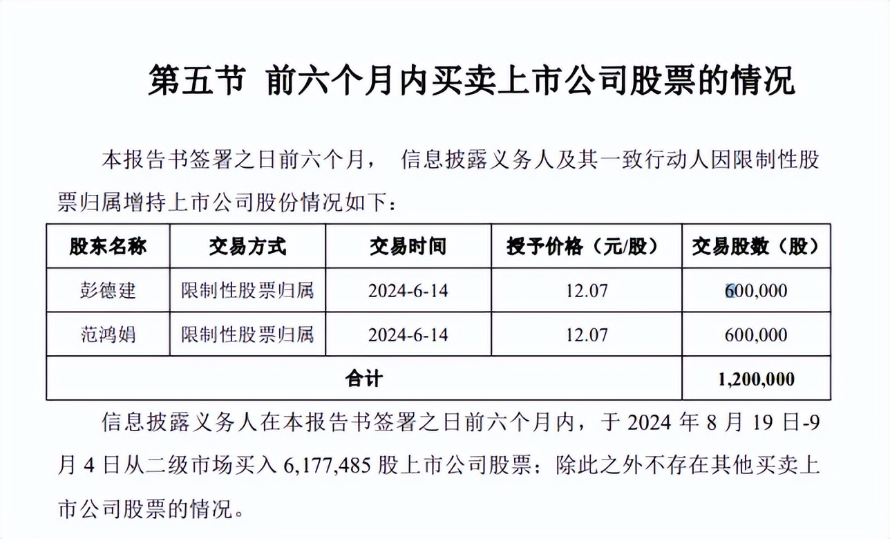 根据权益变动公告,彭德建、范鸿娟在6月14日分别持有公司股份60万股,此后在8月19日至9月4日,从二级市场买入617.75万股,成为了公司重要股东。