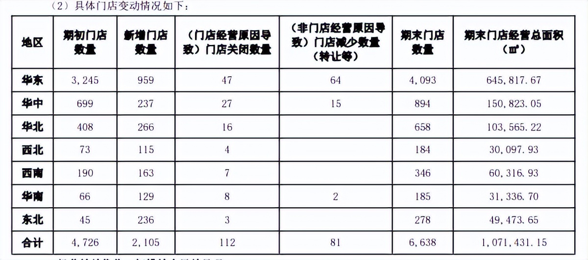 分区域来看,华东门店数量最多,增长也最快,上半年增长959家至4093家,华中、华北、西北、西南、华南、东北门店分别为894家、658家、184家、346家、185家、278家。