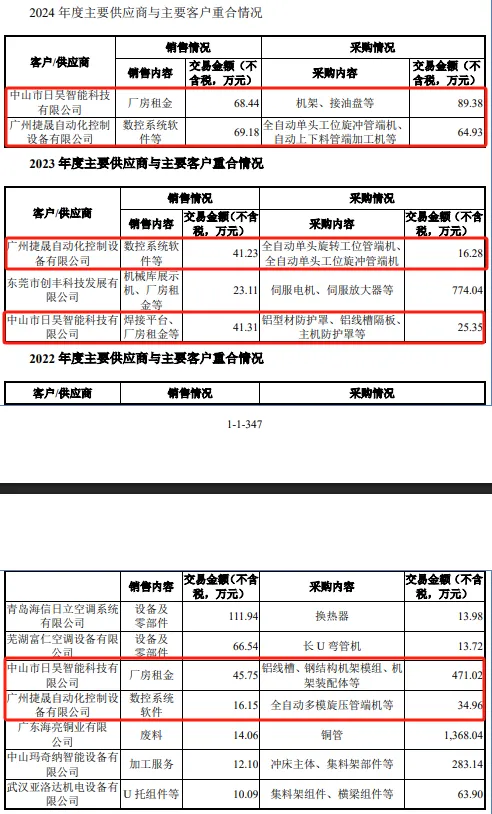 主要供应商与主要客户存在重合。最近三年,奥美森均存在着供应商、客户重合的情况,但随着时间推移而逐渐减少,期间向中山市日昊智能科技有限公司的销售金额分别为45.75万元、41.31万元、68.44万元,而采购额分别为471.02万元、25.35万元、89.38万元。