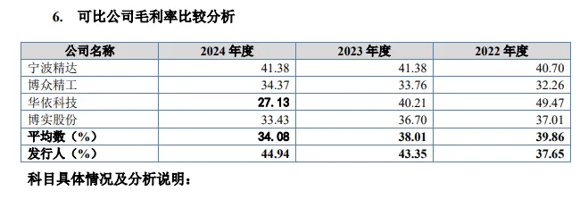 宁波精达及应用领域与奥美森最为相似,近三年毛利率分别为40.7%、41.38%、41.38%,奥美森毛利率快速上升是否合理?