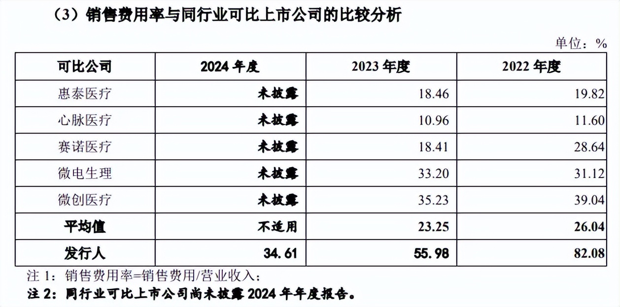 对比来看,北芯生命的销售费用要远超同行均值,以2023年为例,行业均值为23.25%,最高、最低的企业分别是微创医疗、心脉医疗,分别为35.23%、10.96%,与公司根本就不属于同一级别。
