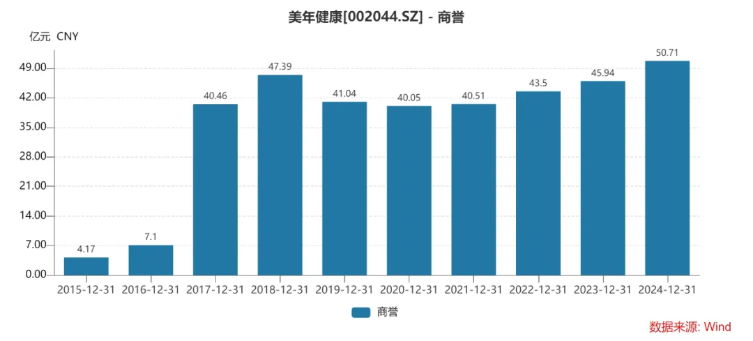 此后四年,美年健康没有再发生类似大额计提商誉减值事件,近两年的商誉减值损失分别为4185.63万元、670.79万元,截至2024年末,公司因收购而形成的商誉资产组超100个,管理难度不小,后续的风险仍需要引起重视。