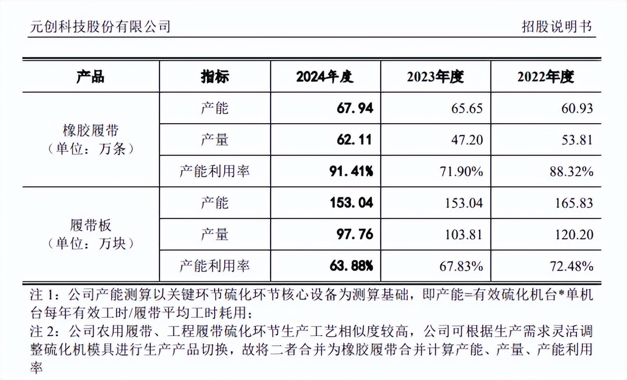 橡胶履带产能利用率波动,履带板产能利用率下滑。生产基地建设项目系元创股份现有生产基地搬迁和扩建项目,在搬迁、改装原厂房设备的同时将引进自动硫化机、自动炼胶系统等设备,项目建成后完全达产后可年产55万条橡胶履带及160万块橡胶履带板。