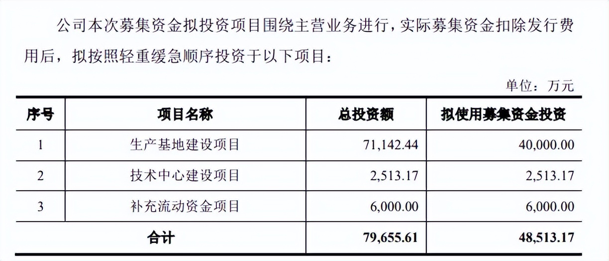 据短平快解读了解,本次IPO,元创股份拟公开发行不超过1,960.00万股,拟募集资金48,513.17万元,用于生产基地建设项目、技术中心建设项目以及补充流动资金项目,拟使用募集资金分别为40,000.00万元、2,513.17万元、6,000.00万元。