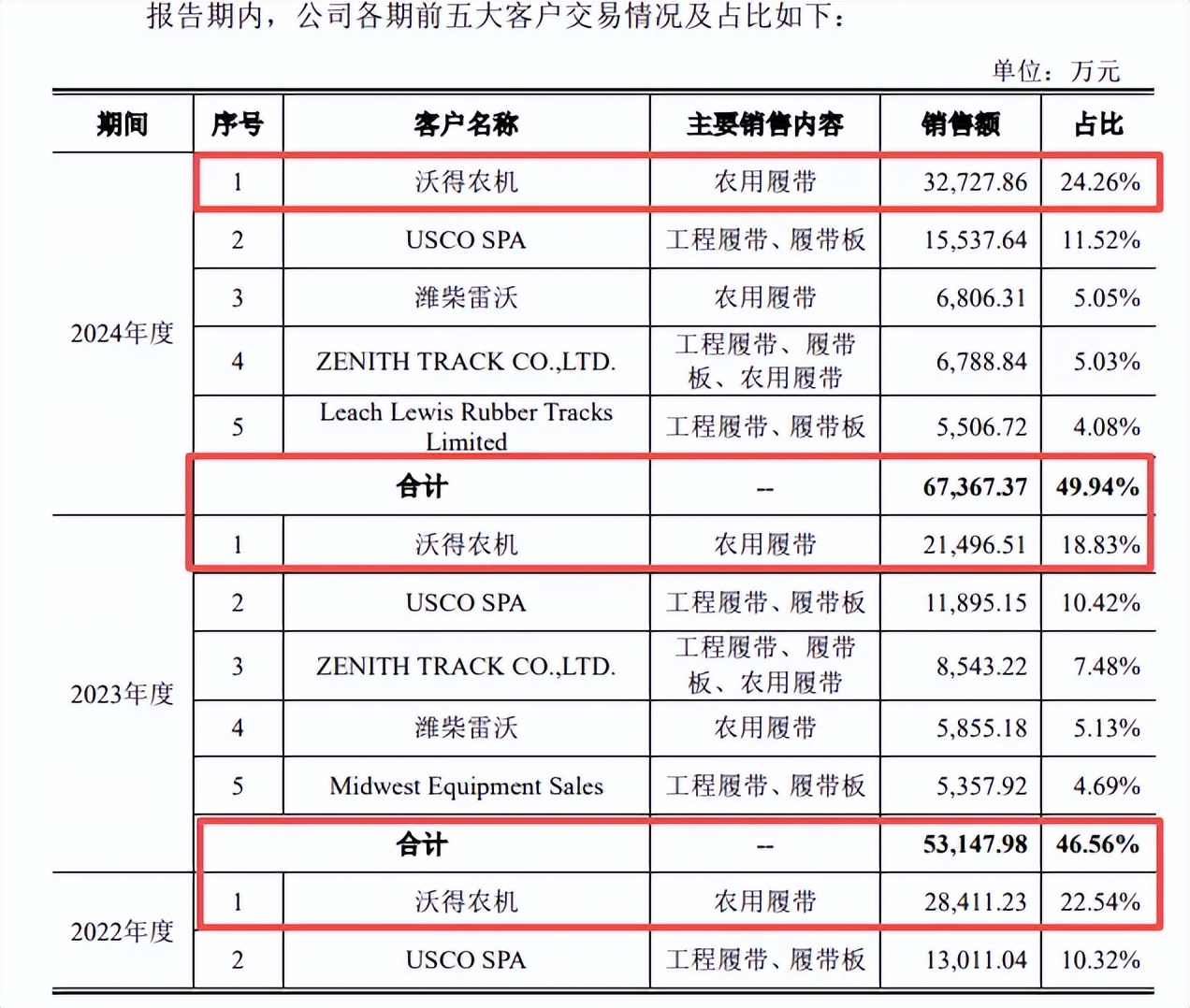 2023年,因“国三”改“国四”排放标准切换的因素,沃得农机对公司的采购规模相应有所降低所致,对当年收入造成了不利影响,显然大客户带来的影响具备两面性。