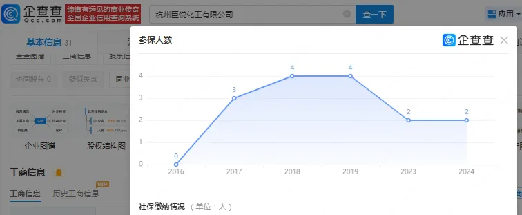 企查查显示,杭州臣悦化工有限公司成立于2016年10月,注册/实缴资本为500万元,不过公司参近年来参保人数均为个位数,近两年均为2人,该公司如何进入供应链体系?元创股份对供应商的审核又是怎么样的?