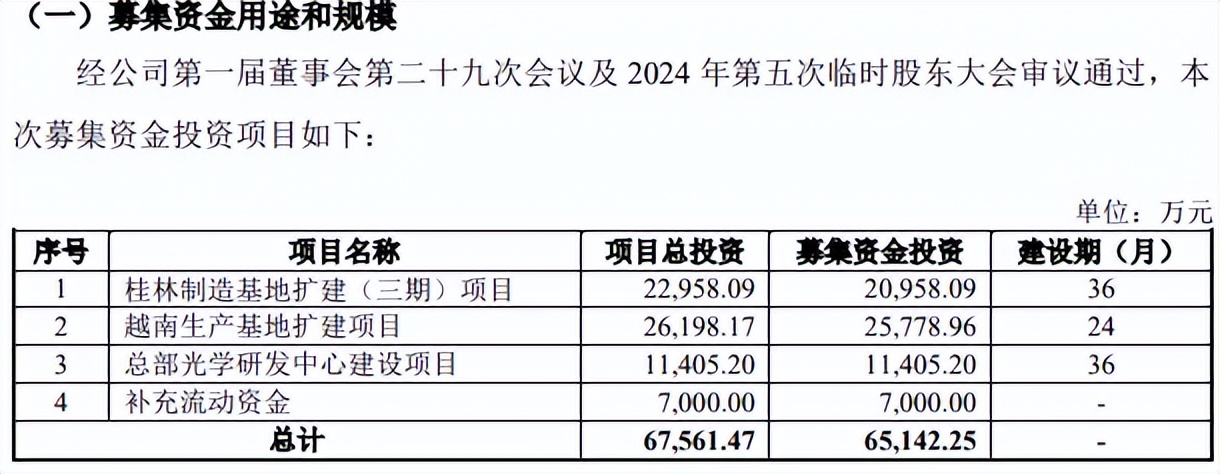 募资缩水1.58亿元。蘅东光此前拟募集资金65,142.25万元,较上会稿缩水15,778.96万元,缩减发生在越南生产基地扩建项目,从原先的25,778.96降低至如今的10,000.00万元。