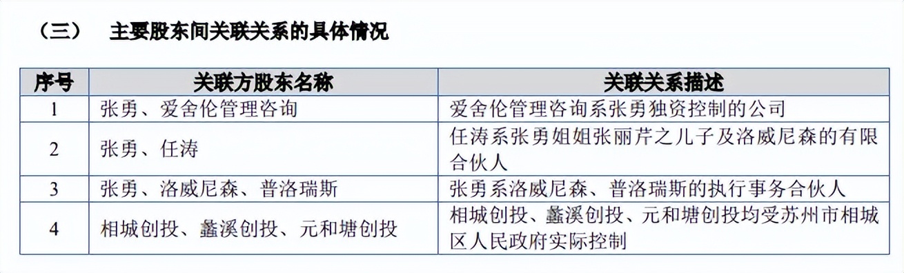 大股东任涛是张勇外甥。2020年12月,爱舍伦引入新投资者任涛,目前持股数量286.77万股,持股比例5.65%,是江苏旭禾执行董事兼总经理,还是张勇姐姐张丽芹之儿子及洛威尼森的有限合伙人。
