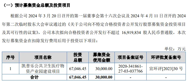 据短平快解读了解,本次IPO,爱舍伦拟向合格投资者公开发行不超过16,919,834股,拟募集资金3亿元,用于凯普乐公共卫生医疗物资产业园建设项目。