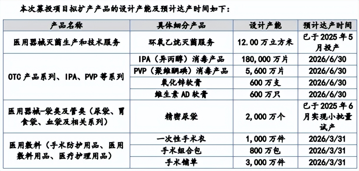 另外,本次募投的OTC产品系列、IPA、PVP等系列产品、医用器械-袋类及管类产品并不在往年收入之列,后续产能消化需要引起注意。