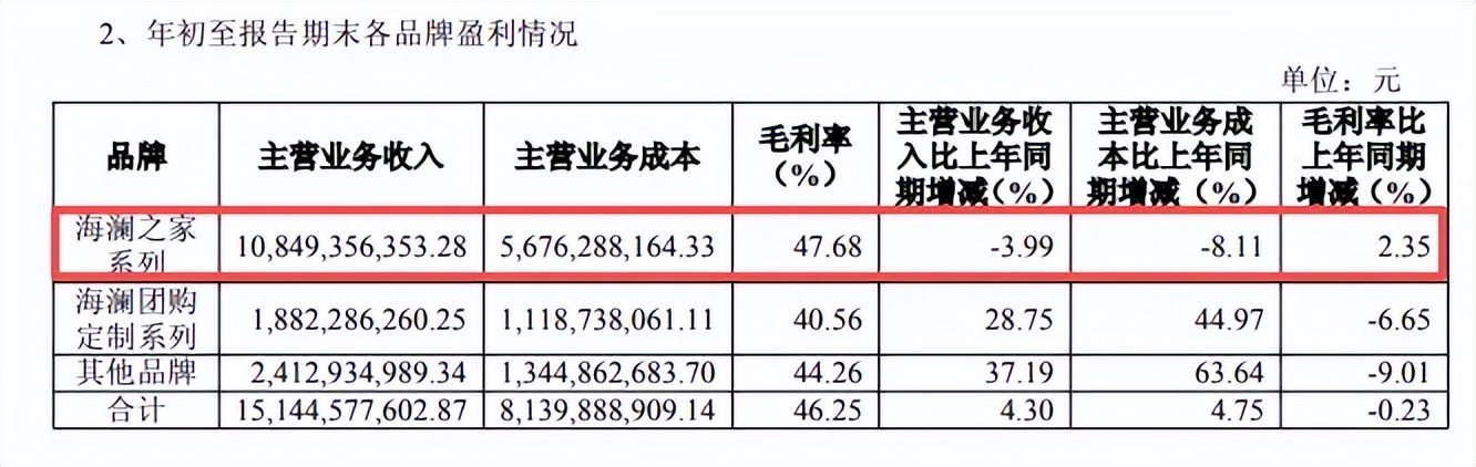 不过,海澜团购定制系列、其他品牌则实现增长,前三季度分别为18.82亿元、24.13亿元,同比分别大幅增长28.75%、37.19%,一定程度上抵消海澜之家系列下滑带来的不利影响。