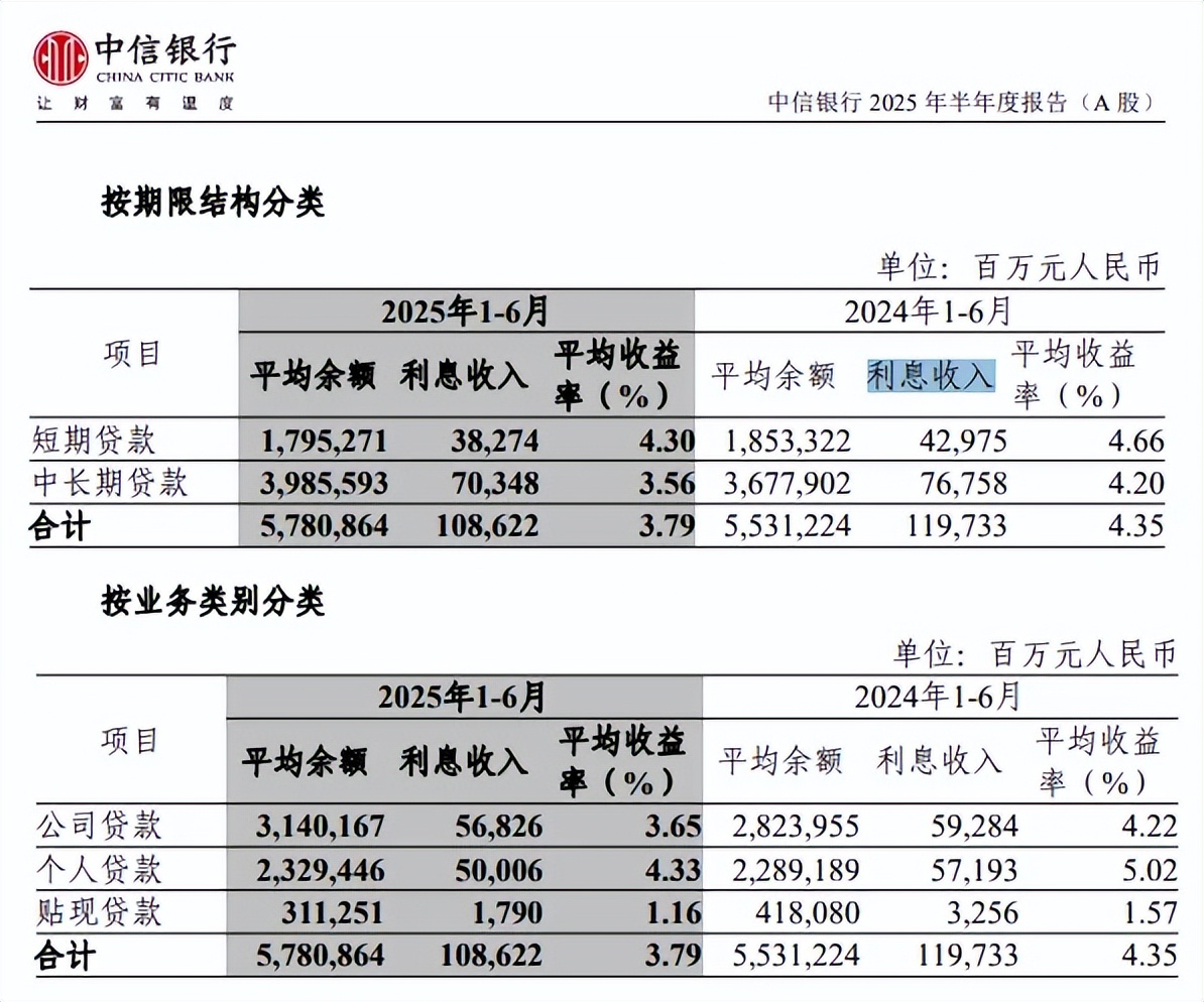 公司贷款利息收入在2024年出现下滑,当年为1180.76亿元,同比减少10.49亿元,2025年上半年568.26亿元,同比减少24.58亿元,降幅同样加剧。