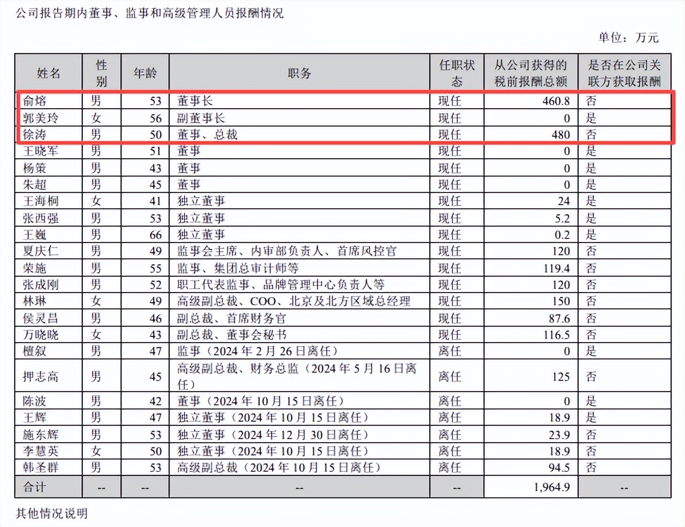 董事长俞熔、总裁徐涛薪酬遥遥领先。销售费用支出大头分别是人力成本、业务拓展费、广告宣传费,2025年中报分别为7.47亿元、1.3亿元、0.3亿元,同比分别下滑4.5%、20.21%、41.28%。
