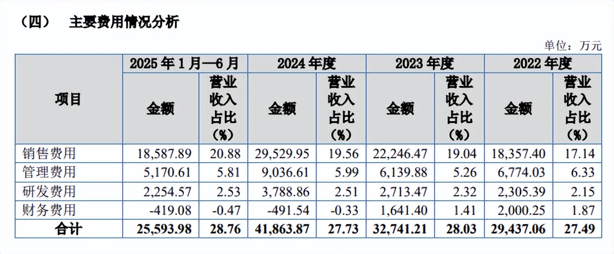 对比自身,不管是销售费用,还是管理费用,均远超研发费用,前者分别为18,357.40万元、22,246.47万元、29,529.95万元、18,587.89万元,后者分别为6,774.03万元、6,139.88万元、9,036.61万元、5,170.61万元,期末金额分别是研发费用的8.24倍、2.29倍,期末费用率分别为20.88%、5.81%,显然公司属于营销驱动型公司。