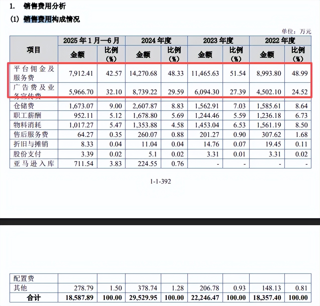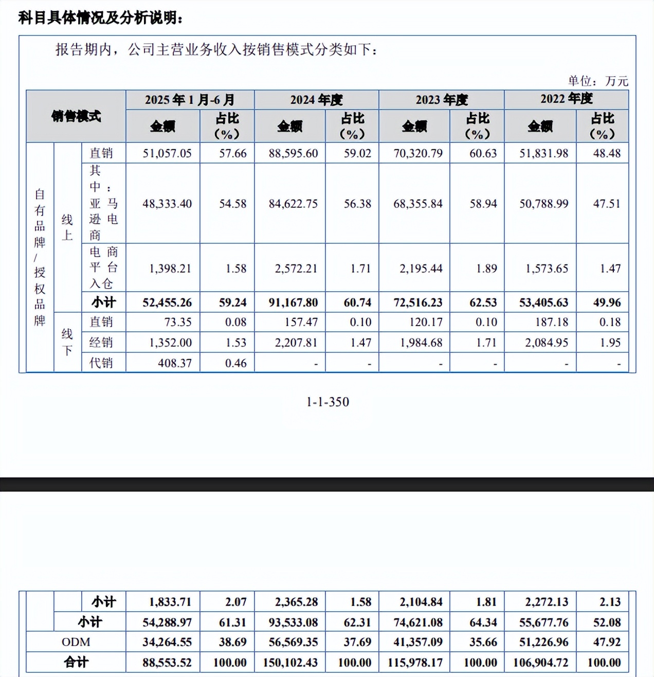 其中来自亚马逊电商的收入分别为5.08亿元、6.84亿元、8.46亿元、4.83亿元,占比分别为47.51%、58.94%、56.38%、54.58%。