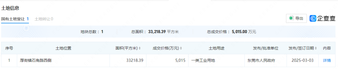据短平快解读了解,上述拟作为抵押担保的不动产为国有建设用地使用权,土地面积为33,218.39m²,用途为工业,企查查显示,公司在2025年3月拿下该地块,成交价格为5,015万元,用于总部基地项目建设,总投资6.125亿元。