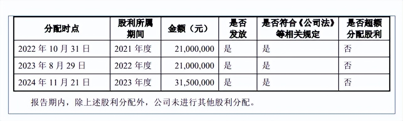 另外,公司报告期内实施三次分红,分别为2100万元、2100万元、3150万元,合计7350万元,实控人王海江及姚晓艳夫妇无疑是最大受益者,从中获得分红总额为7118.64万元。