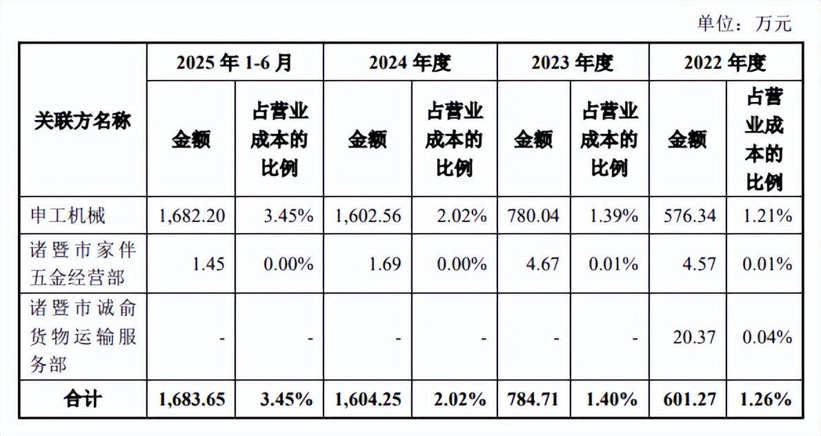 同时期,申工机械实现营业收入分别为890.18万元、1142.39万元、1860.02万元、1899.05万元,2024年、2025年1-6月来自公司的收入占比分别高达86.16%、88.58%。