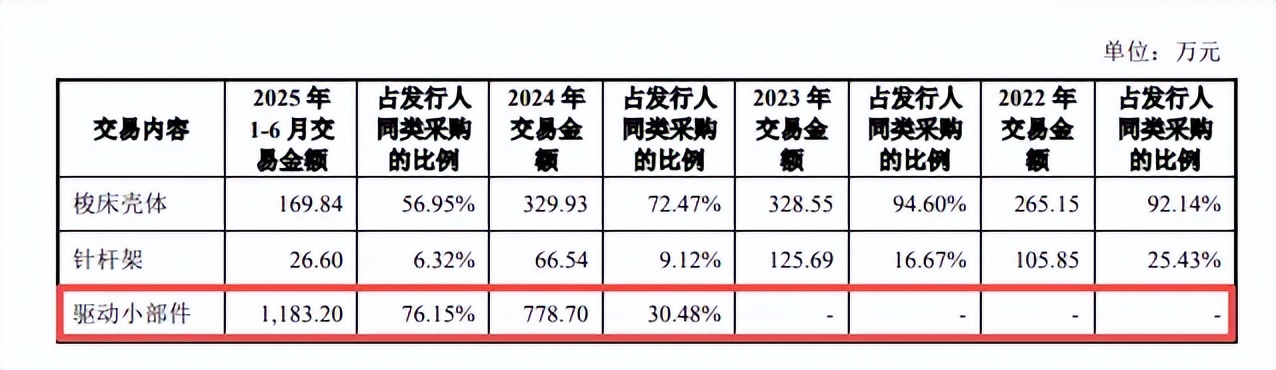 值得指出的是,2024年信胜科技向申工机械新增采购驱动小部件,当年、期末的该零件的交易额分别为778.70万元、1,183.20万元,同时期的采购单价(不含税)分别为334.27元、365.61元,价格比合众机械分别高上3.13元、16.36元。
