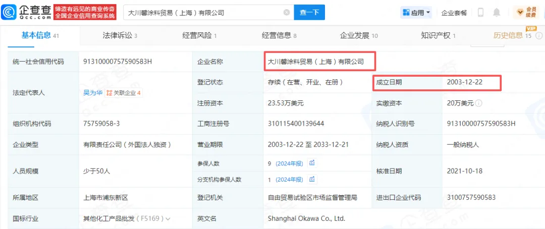 另外,王乃军简历存在瑕疵,招股书显示其2003年5月至2010年3月任大川馨涂料贸易(上海)有限公司副总经理,而企查查显示该公司成立时间为2003年12月22日,那么王乃军何以入职一家尚未成立的企业呢?