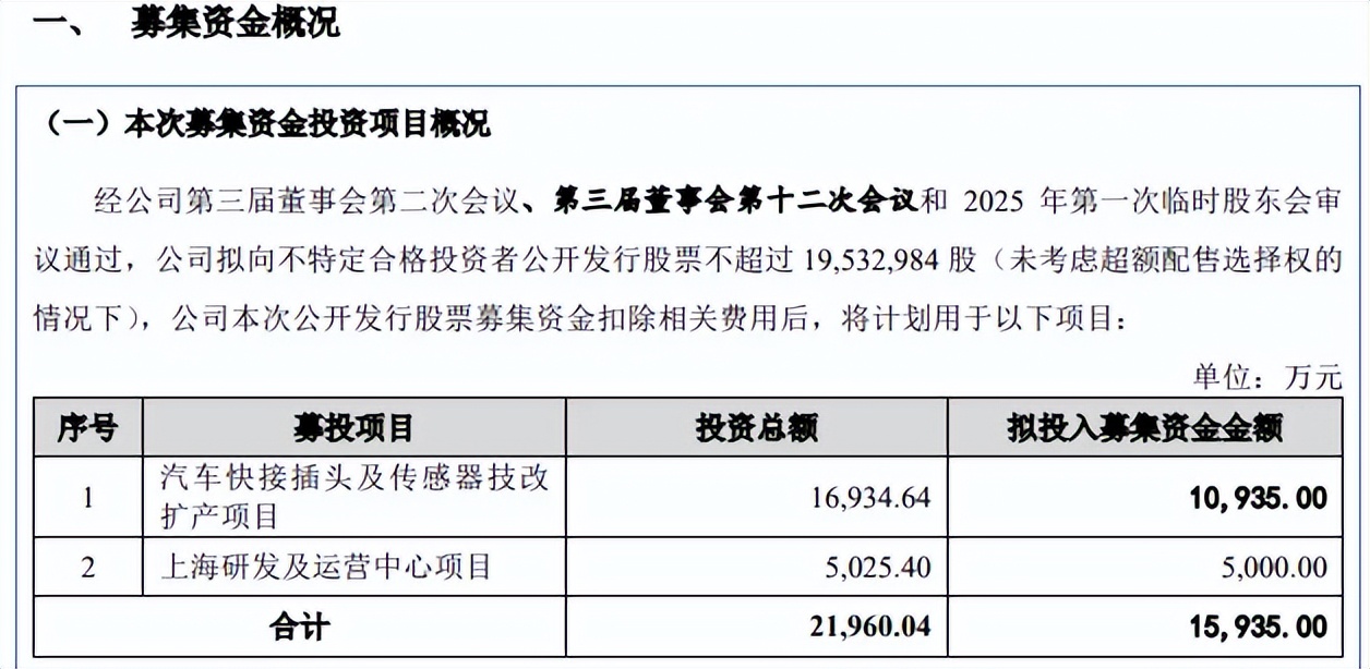 据短平快解读了解,本次IPO,弥富科技拟向不特定合格投资者公开发行股票不超过19,532,984股(未考虑超额配售选择权的情况下),拟募集资金1.59亿元,用于汽车快接插头及传感器技改扩产项目(技改扩产项目)、上海研发及运营中心项目,拟投入募集资金分别为1.09亿元、0.5亿元,此前申报稿中技改扩产项目拟投入募集资金1.5亿元,与上会稿相差4065万元。