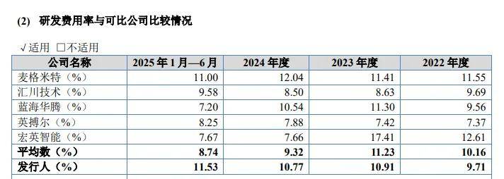 可比同行研发费用率均值分别为10.16%、11.23%、9.32%、8.74%,具体到企业,麦格米特、蓝海华腾2024年研发费用率分别为12.04%、10.54%,与公司大体相当,高于其他同行,颇为重视研发投入。