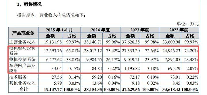 据短平快解读了解,公司收入主要由电机驱动控制系统、整机控制系统贡献,2025年上半年收入分别为1.26亿元、0.65亿元,占比分别为65.81%、33.85%.