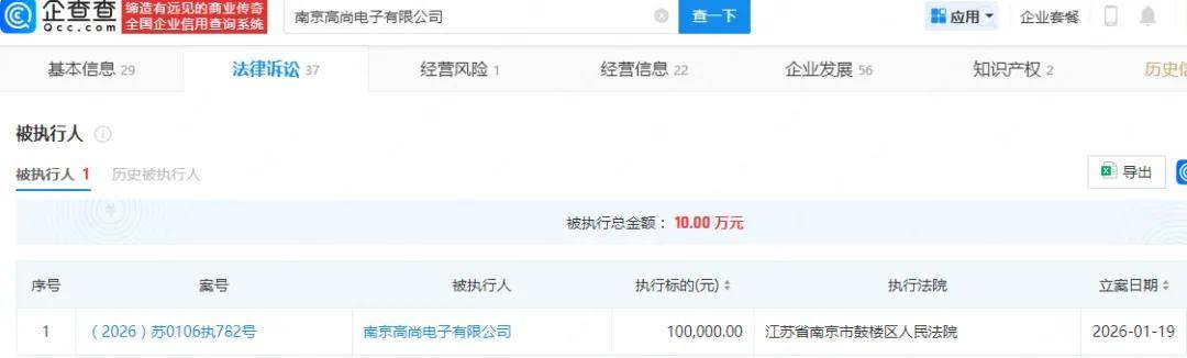 一供应商被执行,一外协厂商参保人数为0人。2025年1-6月,嘉晨智能向南京高尚电子有限公司采购MOSFET,采购金额、占比分别为471.42万元、3.96%,不过该公司在今年1月新增被执行人记录,被执行10万元。