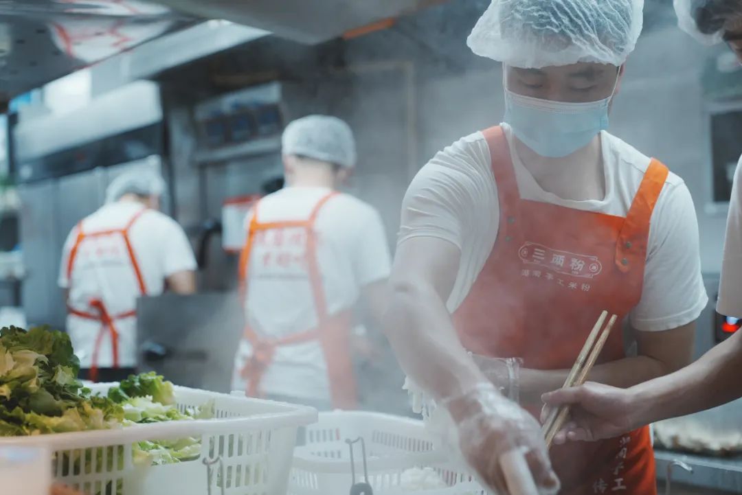 与其他湖南米粉品牌相比,三两粉将品牌“锚点”指向了独特的手工制作米粉工艺。自品牌创立以来,从第1家店到第100家店,三两粉一直坚持湖南米粉手工制作的精髓:“现磨、现蒸、现晾、现切”。