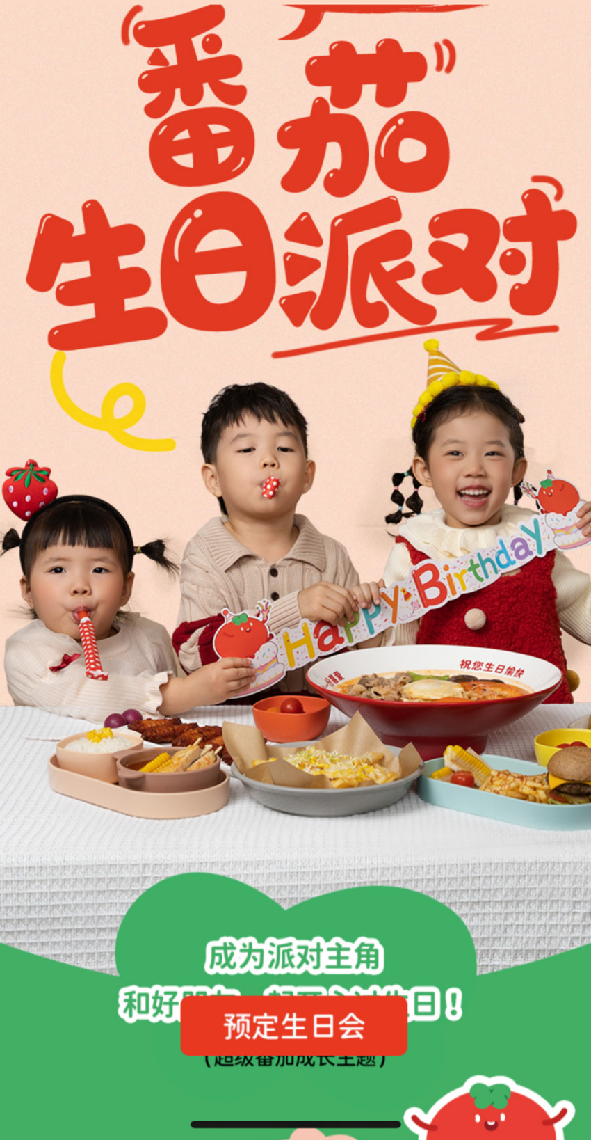 和传统的九毛九门店不同的是,这家儿童体验店还推出了定制“番茄生日派对”服务,预计年后会派对陆续上线更多的主题活动。