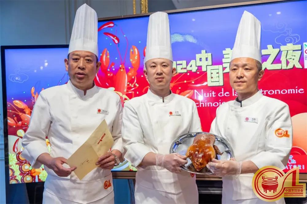 红餐网消息,4月16日,巴黎中国文化中心联合中国烹饪协会共同举办了“你好中国——美食之夜”活动,来自国内各地的19位名厨联袂烹制了精美佳肴,为中法嘉宾奉上一场美食盛宴。联合国教科文组织副总干事曲星,中国驻法国大使馆文化处公使衔参赞严振全,中国常驻联合国教科文组织代表团副代表王盈,巴黎中国文化中心主任刘红革,中国烹饪协会会长杨柳,欧洲时报文化传媒集团总裁、欧洲时报社社长钟诚,法语国家议会大会主席达米安·赛斯兰(Damien CESSELIN),巴尔扎克故居纪念馆馆长伊夫·加尼厄(Yves GAGNEUX),法国国际旅游联合会主席埃里克·杜吕克(Éric DULUC),联合国世界旅游组织特别顾问、名誉秘书长玛丽-皮埃尔·布歇·霍利耶(Marie-Pierre BOUCHER HOLLIER),法国文化部名誉戏剧总监让-皮埃尔·余尔斯(Jean-Pierre WURTZ),法兰西艺术院通讯院士高立昂(Jean-François COLLIGNON),法国电视二台著名新闻主持人巴特夏·莎邦婕(Patricia CHARPENTIER)等法国各界嘉宾60多人出席晚会。嘉宾们共同聆听了美妙的中国丝竹之声,在品味中国美食文化中畅叙中法友谊。