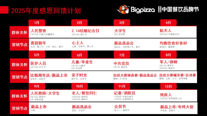 最后,也跟大家分享下,我们2025年度的感恩回馈活动表已经出来了,其中包含对各个阶层的感恩回馈,像1月10日的人民警察节,推出39.9块的福利价格,2月14日凭着当天结婚的结婚证给予福利……