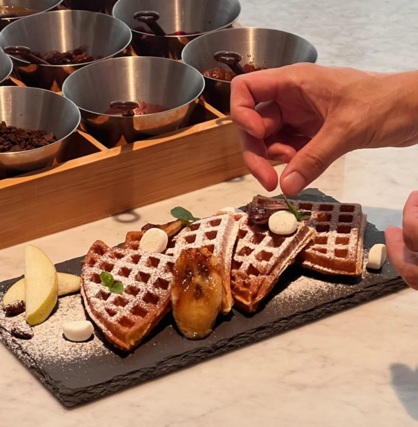 再比如我之前去韩国考察,看到华夫饼,觉得有意思拍了抖音,粉丝问什么时候有。后来样品拿到公司,我又现场做了一个华夫饼拍抖音,又有很多人问什么时候上市。于是,今年9月初,比格就推出了华夫饼,现在已经积累了大批粉丝,很多顾客来了之后不但自己做,还拍了发到抖音,这就引爆了。