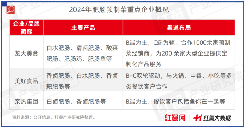 肥肠的应用场景广阔,涮、煮、熘、炒、烤、煎、卤皆宜,在川渝火锅、粉面、中式正餐、烧烤等赛道中均有所运用。2023年以来,肥肠成为多家预制菜企业部署的重要单品,美好食品、龙大美食、亲热集团等企业争相推出相关产品,其中龙大美食的肥肠系列预制菜2023年销售额突破3亿元。