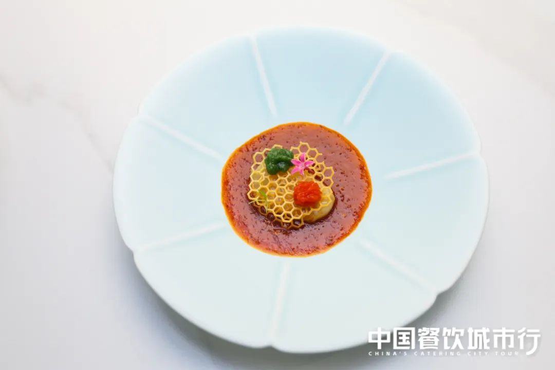 视觉上,绿珠仿佛镶嵌在白玉之上,给人精致典雅之感;翡翠椒麻脆笋特别采用聚慧餐调咸鲜汁和藤椒油进行凉拌,椒麻脆爽、唤醒味蕾;低温油卤鲜鲍采用新鲜的鲍鱼加入聚慧餐调的五香卤汁进行低温油卤,香味浓郁、麻辣适中,弹牙有嚼劲;