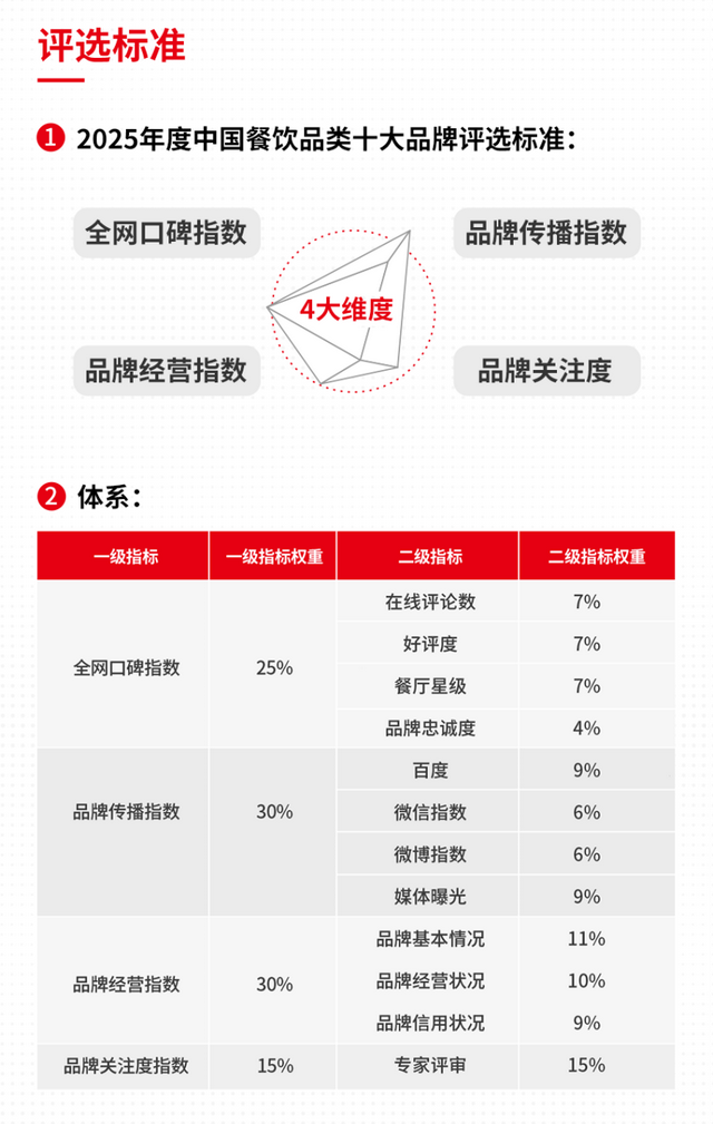 以下为“2025年度中国餐饮品类十大品牌”评选的详细流程及规则明细。