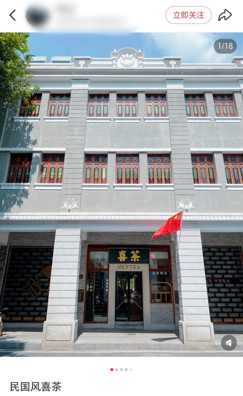 比如喜茶。其广州的永庆坊店在装修上融合了广州上世纪西关骑楼文化,满洲窗搭配青砖墙面,满满的民国风情,被网友称为“广州最美喜茶店”。不少网友前往打卡,小红书上,网友们针对这家门店的打卡笔记就近2000篇。