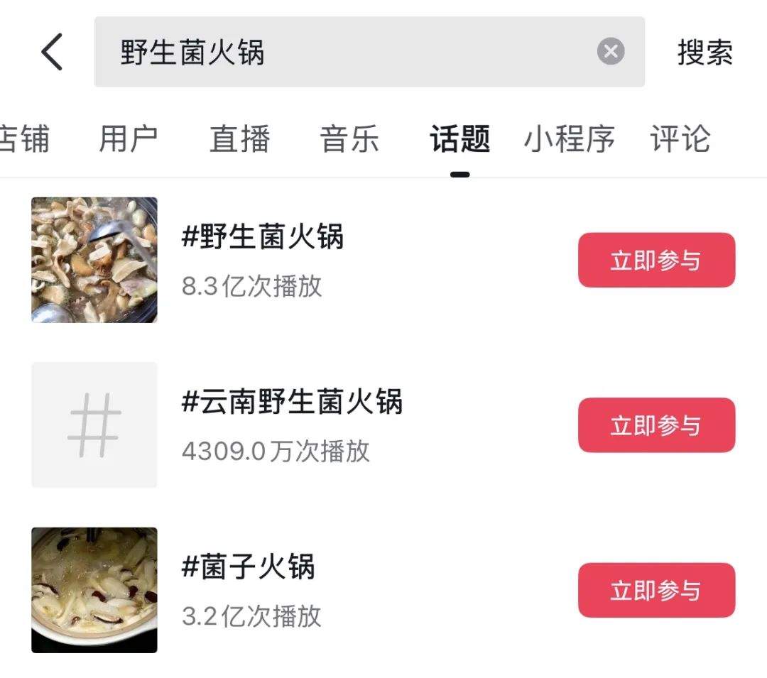 在抖音等社交平台,# 野生菌火锅 #话题播放量已超8亿次。