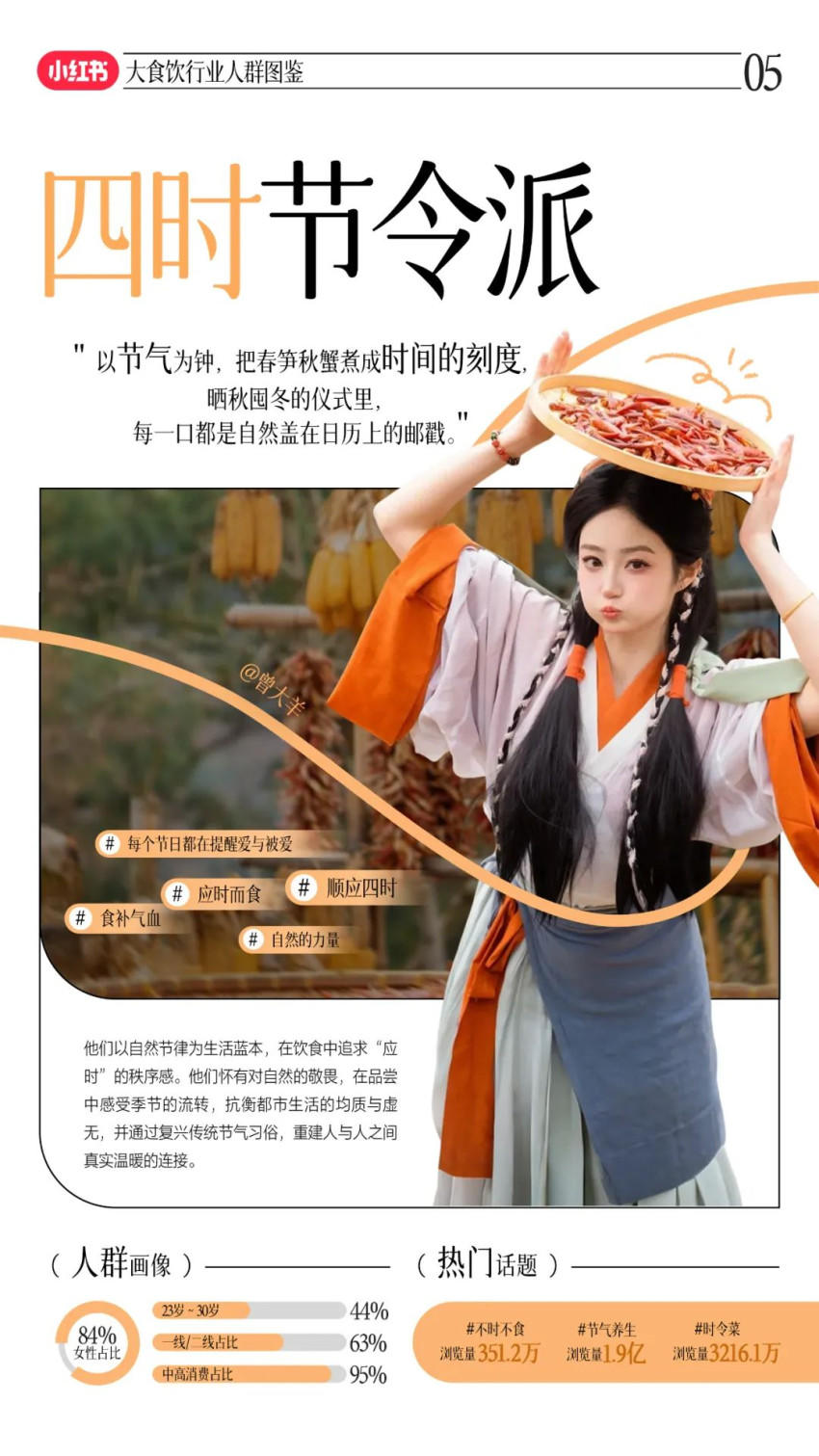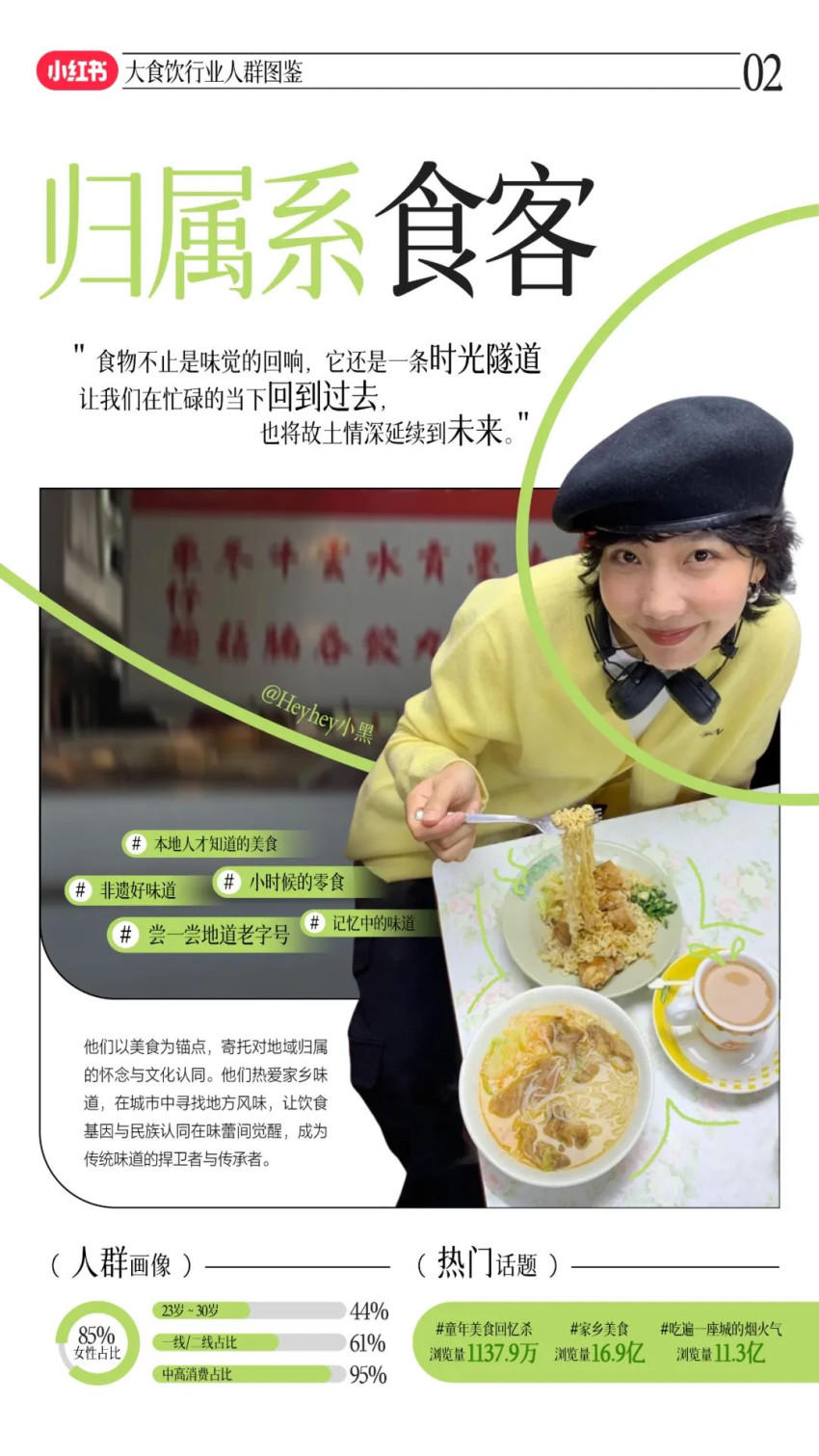 进一步看,山缓缓结合小红书“心品”叙事平台的属性,即年轻、高线城市、高学历人群占比较高,对美食品质、差异化和生活方式有一定追求,是典型以“悦己”情绪驱动消费的人群,以差异化的产品和品质为锚点,通过差异化的内容精准触达这类人群。
